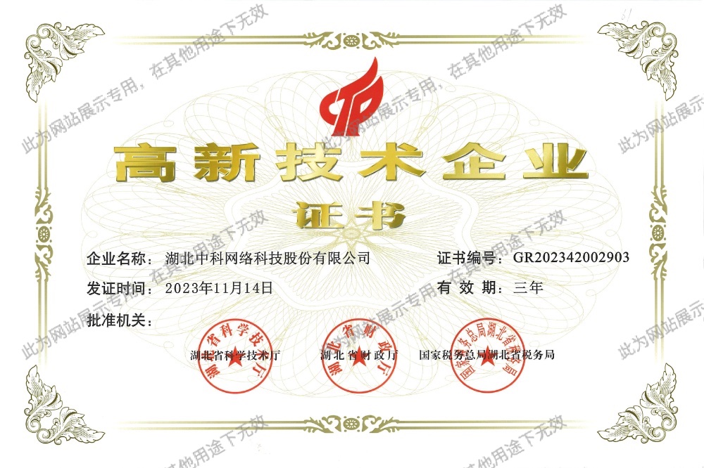 湖北中科網絡科技股份有限公司成立于1998年5月,注冊地為武漢市武昌區,總部位于中國光谷。是智能化、信息化行業的領軍企業,國家認定的高新技術企業、湖北省專精特新企業。